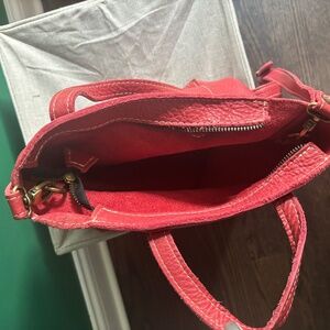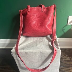 Bright red pebble leather tote with contrast stitching bought directly from PLG. Only used a handful of times. Great condition, with no marks on the suede interior. Comes with cross body strap.