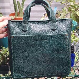 Brand new, never carried. Color is Forest Green. Lovely even pebbles on every panel. Tote handles, but includes adjustable crossbody strap. It could be carried as a handbag, shoulder bag or worn crossbody messenger style.