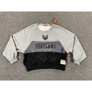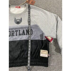 Portland Trail Blazers Sweater Womens Large Gray Mitchell and Ness Velour Fleece