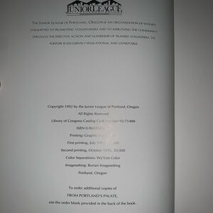 Explore a collection of recipes from the City of Roses with the Portland's Palate Junior League cookbook. Excellent brand new condition. Corners in pristine perfect shape and no markings whatsoever. Likely has never been used/opened more than once!