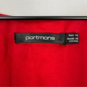 Keywords: silkdress, Portmans, rubyreddress, holidayoutfit, officewear, elegantdress, mididress, timelessfashion, femininestyle, flatteringsilhouette, ruffledetails, evening wear, chicdress, versatilewardrobe.