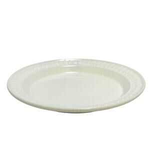 Elevate your dining experience with this exquisite Portmeirion design by Susan Williams-Ellis! Additional plates are available with volume discount pricing offering savings of up to 15% if purchasing multiple plates. The Options 10.5" dinner plate, crafted in Britain, features an elegant smooth embossed laurel design around the rim in a creamy ivory color! This beautiful plate, produced between 1998 and 2006, is a retired piece, making it a unique addition to any collection. We also have Options Salad Plates and Mugs for sale in our store-check them out! Perfect for everyday use or special occasions, this dinner plate combines classic design with timeless appeal. Add a touch of sophistication to your table setting with this stunning Portmeirion piece! # 5030