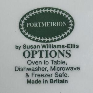 Elevate your dining experience with this exquisite Portmeirion design by Susan Williams-Ellis! Additional bowls are available with volume discount pricing offering savings of up to 15% if purchasing multiple bowls. The Options 8.5" rim soup bowl, crafted in Britain, features an elegant smooth embossed laurel design around the rim in a creamy ivory color! This beautiful bowl, produced between 1998 and 2006, is a retired piece, making it a unique addition to any collection. We also have Options Dinner Plates and Tankards for sale in our store-check them out! Perfect for everyday use or special occasions, this soup bowl combines classic design with timeless appeal. Add a touch of sophistication to your table setting with this stunning Portmeirion piece! # 5031