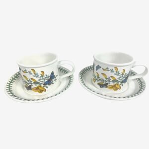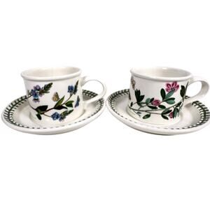 This highly sought after Portmeirion Botanic Garden Vintage 1972 made in England Dinnerware features a Set of Eight Flat Bottom/Drum Coffee Cups & Saucers Set Plus 2 Extra Saucers! Note: One of the cups has some crazing on the inside-see photos to determine/verify condition! The Cups and Saucers measure: