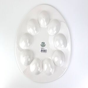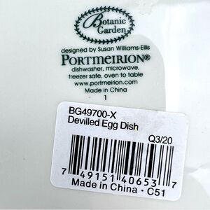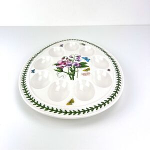 Portmeirion Botanic Garden Sweet Pea Deviled Egg Plate. See Pictures.. Such a beautiful way to serve deviled eggs. Has a egg shape compartment for 8 deviled egg halves. The plate measures 12-1/2" high x 9" wide. Decorated with a large bouquet of sweet peas and accented with various butterflies. Designed by Susan Williams Ellis. Flawless Condition. Looks like it was never used.