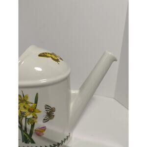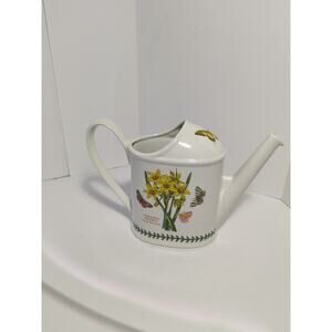 The Portmeirion The Botanic Garden Watering Can Water Pitcher in Blue Primrose is a decorative piece of pottery handcrafted in Britain in 1995. This original, multicoloured figurine features a floral pattern, glossy finish, and stands at 7.75 inches tall with a width of 12 inches. Part of the Botanic Garden product line by Portmeirion.