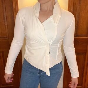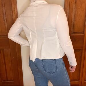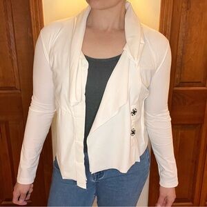 Porto clothing incorporates all the best aspects of fit and fabric with graceful twists and pleats transforming the classic and creating something special. This asymmetrical jacket features stunning snaps with artisan materials.