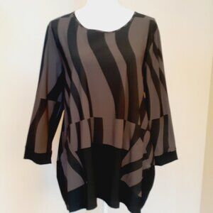 Black and dark gray wavy stripes in Porto's signature polyamide nylon & percent Lycra fabric for excellent drape and packability