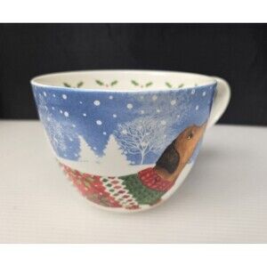 Portobello By Design Dachshund Dog Sweater Mug Winter Christmas Holly Snow Bone China
