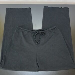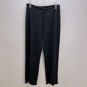 Portocruz Black Gauzy Stretch Drawstring Waist Wide Leg Cover Up Pants Beachy L