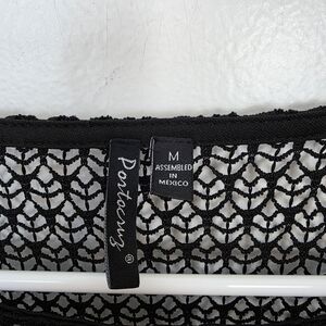 Portocruz Black Open Knit 3/4 Sleeve Gothic Sheer Festival Shirt Size Medium