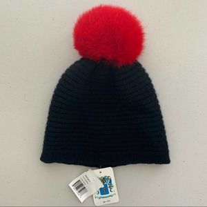 Portolano Cashmere/Extra Fine Wool/Silk Blend Beanie with Real Rabbit Fur Pom. Very soft!