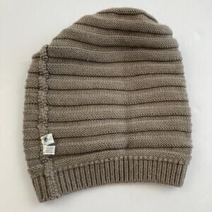Portolano One Size Wool Blend Chunky Knit Oatmeal Tan Slouchy Beanie Winter Hat