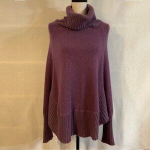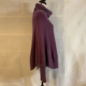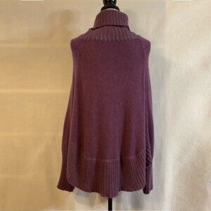Excellent gently used condition. No stains or holes. Final photo is for fit only - the one for sale is purple, not green. Portolano turtleneck poncho sweater. Like a poncho with sleeves near the hem. A light plum purple with variegated grey. Ribbed turtleneck, cuffs, and hem. Raglan sleeves. Sooo soft. 40% rayon, 28% nylon, 27% wool, 10% angora, 5% cashmere. Curved hem that with a length of 22-28". Hand wash. No trades, please! Looks great with leggings or a skinny pant.