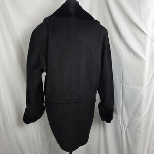 Portrait Black Faux Fur Shawl Collar Belted Jacket Women’s Size 4 Vintage Cozy