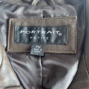 Portrait Petite Medium Brown Leather Jacket Zip Front Lined Pockets NEW Office
