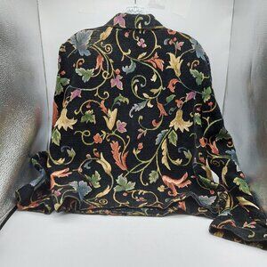 Portrait Tapestry Jacket Size Large Zip Up Blazer Black Floral Shoulder Pads