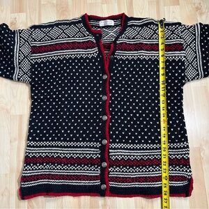 Portraits By Northern Isles Cardigan Sweater Black Red Tribal Print Boho Large