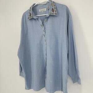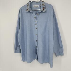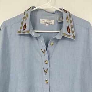 Portraits by Northern Isles Shirt Womens 22W Blue Embroidered Collar Western Top