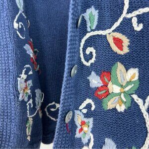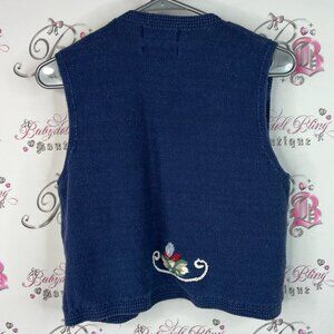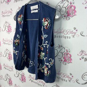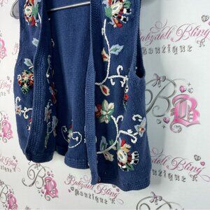 This stylish navy cardigan vest by features beautiful floral embroidery, adding elegance to any ensemble. Small. Hand embroidered. Vintage.