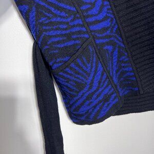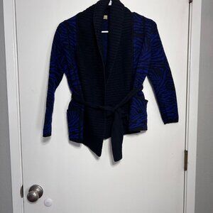 Ports 1961 100% Wool Belted Cardigan Blue Black Women's Size Small