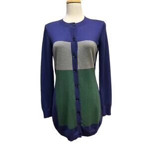 Ports 1961 Sweater Dress Cardigan Tunic Sz L Merino Wool Navy Colorblock Classic