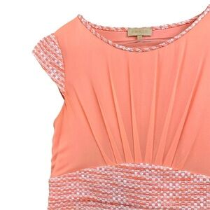 Ports 1961 Tweed Silk Pleated Panel Woven Cocktail Dress Peach Pink Size 10
