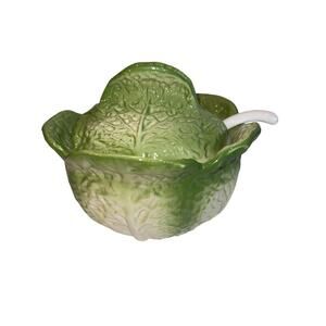 Portugal Cabbage Ware Signed John Buck Leaf Lidded Soup Tureen & Under Plate
