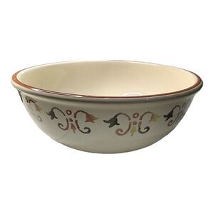 Add elegance to your table with this Portugal VICENZA by ARTIMINO serving bowl. Featuring a classic ivory color with cream scroll detailing, this 11.5-inch round pottery bowl is perfect for mixing, serving, or displaying.
