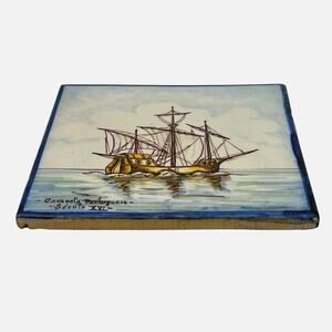 Portuguese Tile Ship Caravela Secula Handpainted Battistini de Maria de Portugal