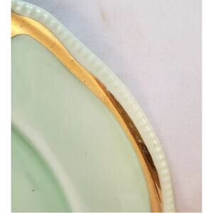Porzellan Imperial: Mint green w/ Handpainted Roses and Signed by Ullrich, Scalloped, Gold Trim