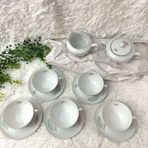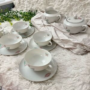 Up for sale: Porzellanfabrik Arzberg Porcelain Set of 5 pc teacup & saucer, 1 creamer, 1 sugar bowl/jar with lid