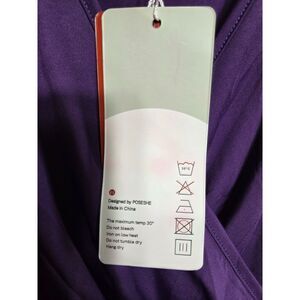New with tags Poseshe Plus Size lovely amethyst dress in comfy and stretchy fabric. This is a size 2XL and measurements are armpit to armpit not stretching 21" and waist without stretching 19". There is lots of give. Has a lovely feminine V-neck. You could easily add a camisole if you prefer not to show any cleavage. Lovely comfortable dress that has NEVER been worn.