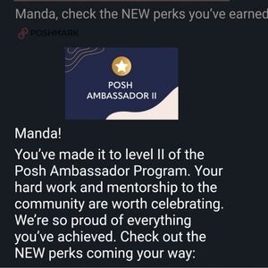 I am officially a Posh Ambassador II.. I am also a Top Seller, Fast Shipper. and I have a 5 ⭐️⭐️⭐️⭐️⭐️ Rating! Shop with Confidence !