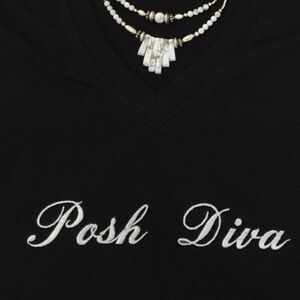 Embroidered not decals, won't crack or peel! Posh Pride!! Show it off with this Posh Diva Embroidered V-Neck Tee!! Runs small, advice sizing up. POSH DIVA™ and LIVE, LOVE, POSH™ are trademarks of Kathy Adams.