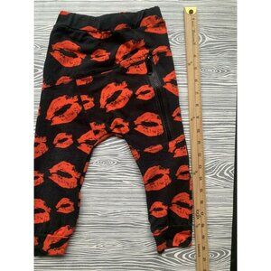 Posh Kiddos size 2T. Black pants with red lipstick kisses print. Worn once on Valentine's Day.