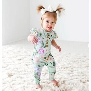 NWT Posh Peanut Bamboo Erin Minty Cap Sleeve Henley Romper sz 9-12 months Soft Girl Pastel Whimsygoth Organic Allergenic. Super adorable! Buttery soft fabric for comfort and ultra soft on baby's skin. New condition. 95% Viscose of bamboo 5% Spandex. Machine washableNo known rips, holes, tears, stains or defects.