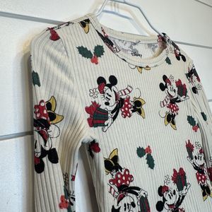 Posh Peanut Christmas Minnie Mouse Pajama Top 3T 4T Ribbed PJ Disney Bamboo FLAW