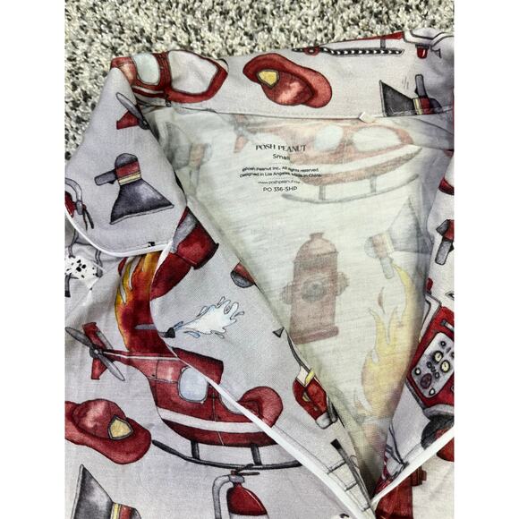 Posh Peanut Fire Station Print Bamboo Pajama Top, Sz S, Button-Up Nursing