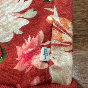 Vibrant floral long sleeve top with a red base. Features a colorful flower pattern.
