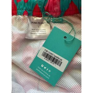 Dive into style with Posh Peanut's vibrant Blue swim shorts, designed for the modern man who loves a splash of fun. These swim shorts feature a playful heart pattern, perfect for recreational activities by the pool or beach. The elastic waistband and adjustable drawstring ensure a comfortable fit, while the mesh lining offers added support. Made from durable polyester, these shorts are machine washable for easy care. Available in size L, they are new with tags, ready to make a splash in your summer wardrobe.