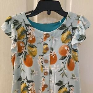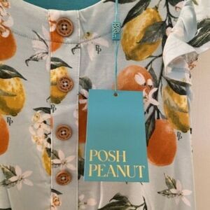 Posh Peanut Mirabella Ruffled Cap Sleeve Henley Hi-Low Dress Girls Size 3T. New With Tags. So soft, pretty and comfy. Pretty print with citrus lemons and oranges.