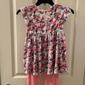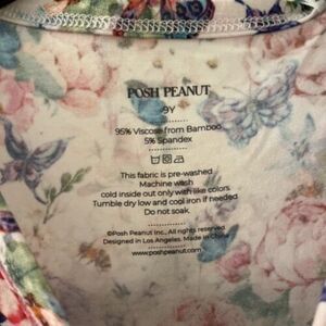 Posh Peanut Pink Vivienne Ruffled Cap Sleeve Peplum Legging Set Girls Size 9. New With Tags, never worn or washed, however these were hung in a closet for a while on a hanger and the hanger left some indents on the pants near the waist.Beautiful Vivienne print with bees, butterflies and floral print.