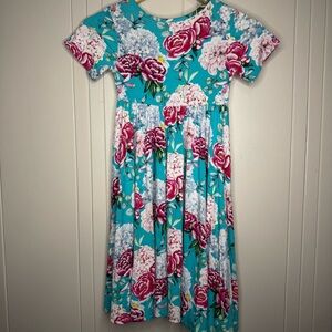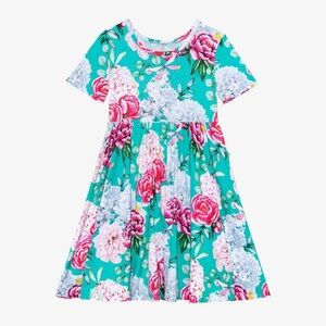 This delightful sundress from Posh Peanut features a vibrant floral pattern on a pink and blue backdrop, perfect for casual outings. The dress boasts a comfortable crew neck and short sleeves, offering a relaxed yet stylish look. Its soft, flowing fabric ensures ease of movement and a flattering fit.
