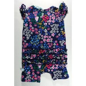 Posh Peanut Ruffled Cap Sleeve Short Length Romper 0-3 Months Endra Black Flower