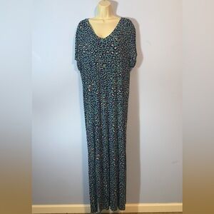 Chic leopard print maxi night dress. Teal and pink hues. EUC so soft and comfortable