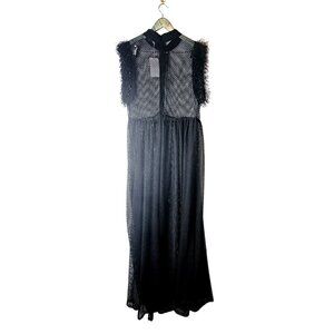 Posh Shoppe Sheer Feather Sleeve High Neck Full Mesh Black Dress, 1X, NWT
