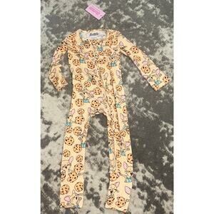 You are purchasing a delightful set featuring a hardcover book and a matching pair of toddler pajamas! The book is titled 'If You Give a Mouse a Cookie', a popular children's favorite. It tells the story of what happens when you give a cookie to a hungry little mouse. Included is a matching pair of Posh Tot unisex toddler pajamas, size 2T. These pajamas are orange and feature a repeating pattern of the mouse and cookies. They zip down the front and the left leg to the ankle and have cuffs that can be turned over the feet, offering the option to be footed or footless. Both items are brand new, with the pajamas still having their tags attached. They come from a non-smoking home.