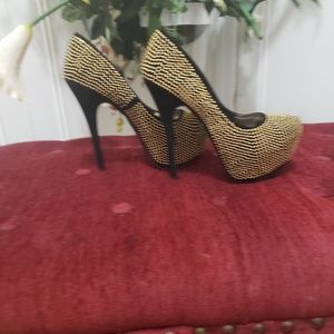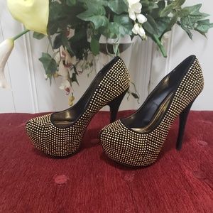 Black and gold shiny shoe 1 diamond is missing on one show but not really noticeable