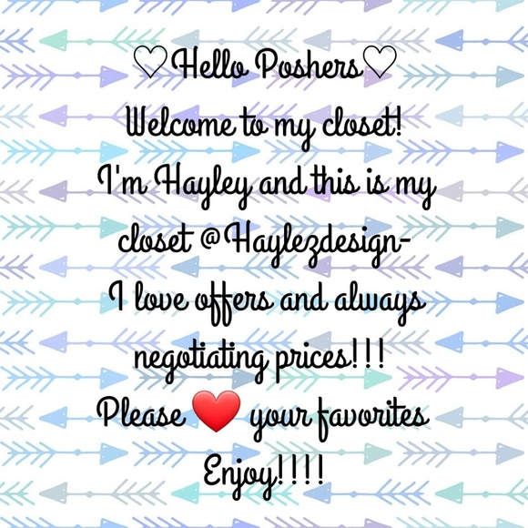 Hello I am Hayley and this is my closet and business @Haylezdesign- I adore fashion and spend tons of money on it!!! The best part about it, is giving you poshers amazing deals on trendy, chic, vintage, and shabby styles. All are popular brands and excellent condition. Dont be shy check it out and remember offers are appreciated and ❤ your favorites.